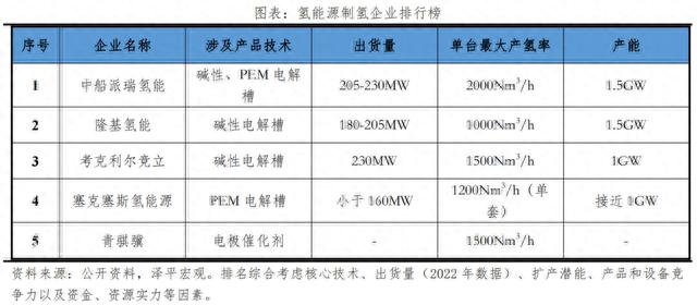 制氫企業(yè)排名前列的有:中船派瑞氫能、隆基氫能、考克利爾競(jìng)立、塞克塞斯氫能源、青騏驥。