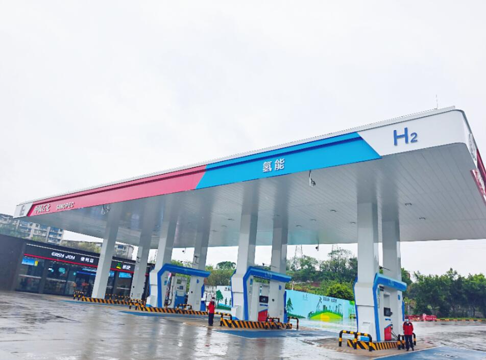 在重慶,中國(guó)石化充分發(fā)揮一體化優(yōu)勢(shì),統(tǒng)籌推進(jìn)重慶石油、四川石油與川維化工多元聯(lián)動(dòng),建成投產(chǎn)3000標(biāo)準(zhǔn)立方米/小時(shí)的供氫中心,生產(chǎn)出的高純氫純度達(dá)99.999%,通過管道送至重慶石油長(zhǎng)壽加氫綜合能源母站,并由管束車配送至加氫子站供氫燃料電池車使用。在應(yīng)用場(chǎng)景方面,密切與地方政府平臺(tái)企業(yè)溝通合作,加大各類型氫能車輛推廣應(yīng)用力度,目前輕卡、重卡、環(huán)衛(wèi)、公交等氫能車輛累計(jì)已推廣超300輛;在站點(diǎn)建設(shè)方面,已建成投運(yùn)4座加氫站,并繼續(xù)在成渝、渝蓉、渝遂、渝萬等高速公路沿線加快布局。