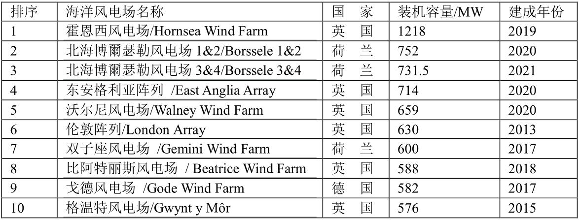 全球十大海洋風(fēng)電場