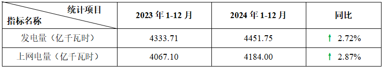 表3:2024年1-12月運行核電機組電力生產情況統(tǒng)計表