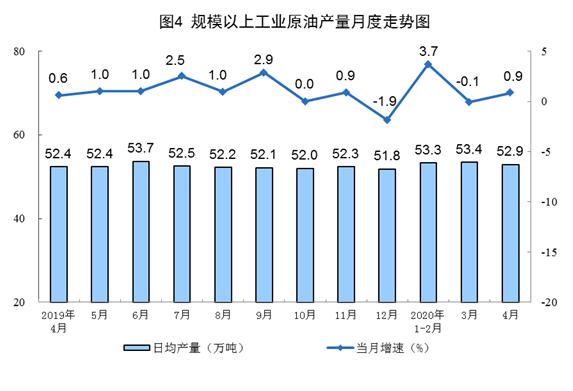 4月份,規(guī)模以上工業(yè)原煤生產(chǎn)保持較快增長,原油、電力生產(chǎn)由降轉(zhuǎn)增,天然氣生產(chǎn)加快。