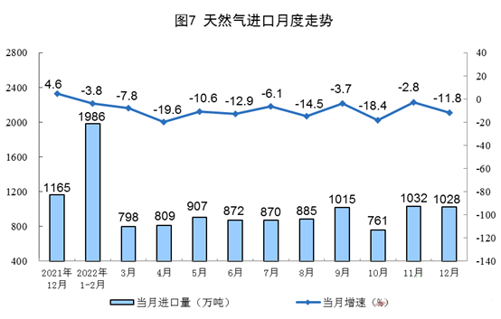 2022年,生產(chǎn)天然氣2178億立方米,同比增長6.4%。進(jìn)口天然氣10925萬噸,同比下降9.9%。