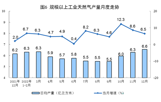 12月份,規(guī)模以上工業(yè)原煤、原油、天然氣和電力生產(chǎn)同比保持增長。與11月份相比,原煤、原油、天然氣增速有所放緩,電力增速加快。