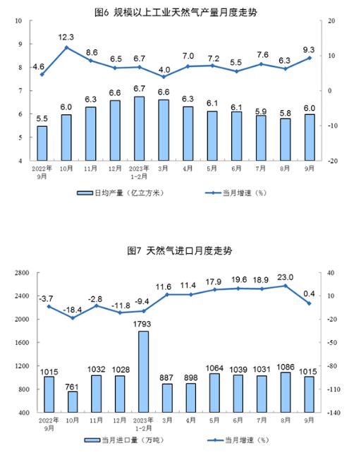 1—9月份,生產天然氣1704億立方米,同比增長6.4%。進口天然氣8777萬噸,同比增長8.2%。