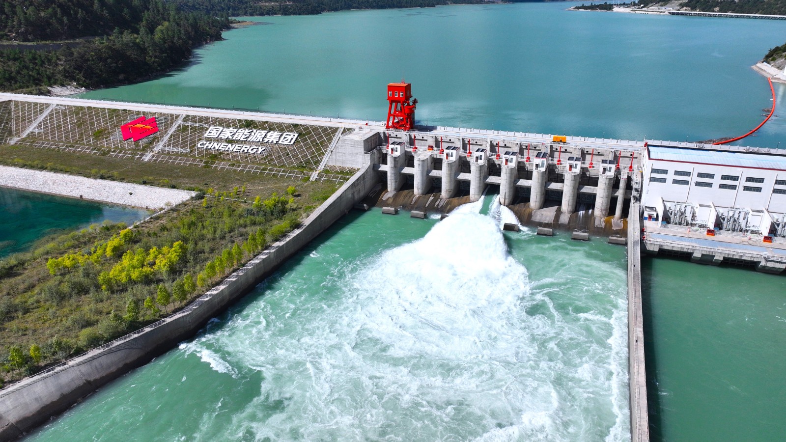 圖為應(yīng)用“水風(fēng)光蓄一體化能源調(diào)度”數(shù)字平臺系統(tǒng)的多布水電站