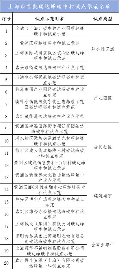 20家!上海首批碳達(dá)峰碳中和試點(diǎn)示范名單公布