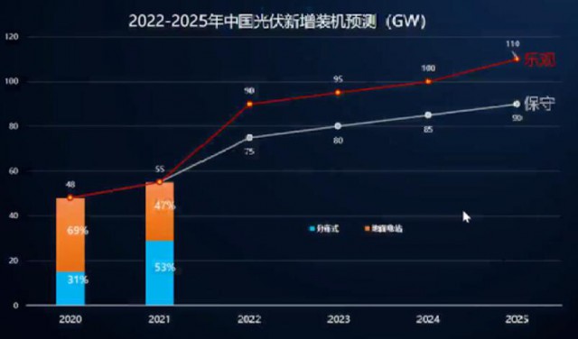 根據(jù)中國光伏行業(yè)協(xié)會(huì)(CPIA)則預(yù)估,2022-2025年,我國年均新增光伏裝機(jī)將達(dá)到83-100GW,系全球光伏第一大裝機(jī)國。