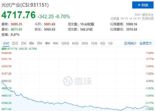 9月15日,受歐盟委員會擬推行“涉J法案”等利空消息影響,光伏板塊全線暴跌,中證光伏產(chǎn)業(yè)指數(shù)(CSI:931151)報收4718點(diǎn),跌幅達(dá)到6.67%,自8月18日高點(diǎn)以來,累計跌幅達(dá)到18.6%。