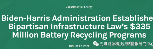 近期,美國能源部(DOE)宣布多項信息,旨在推進電池回收和電池快速運行驗證技術發(fā)展,詳情如下: