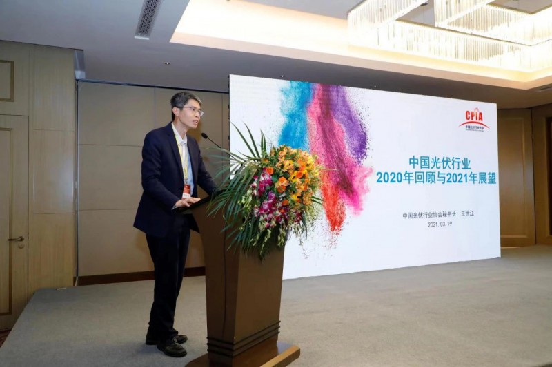 論壇上,中國(guó)光伏行業(yè)協(xié)會(huì)王世江秘書(shū)長(zhǎng)做了題為《2020年中國(guó)光伏行業(yè)回顧和2021年中國(guó)光伏行業(yè)展望》的主題演講。王秘書(shū)長(zhǎng)指出,2020年,國(guó)內(nèi)光伏電站裝機(jī)規(guī)模持續(xù)提升,投資成本繼續(xù)下降,產(chǎn)業(yè)集中度快速提升,技術(shù)不斷發(fā)展,融資規(guī)模不斷擴(kuò)大,國(guó)際化布局不斷加強(qiáng);展望2021年,全球光伏市場(chǎng)規(guī)模將加速擴(kuò)大,源網(wǎng)荷儲(chǔ)一體化和多能互補(bǔ)大基地將成為電站開(kāi)發(fā)關(guān)注熱點(diǎn),技術(shù)快速迭代,行業(yè)將迎來(lái)擴(kuò)產(chǎn)潮,“光伏+”模式帶來(lái)更多應(yīng)用可能性,預(yù)計(jì)光伏將占據(jù)可再生能源增量市場(chǎng)半壁江山。