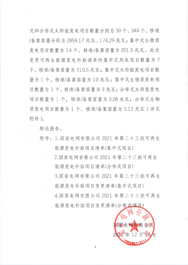 關(guān)于公布2021年第二十三批可再生能源發(fā)電