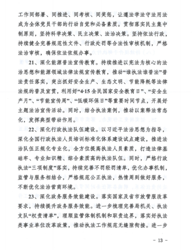 1、能源安全方面:全面落實(shí)安全監(jiān)管和設(shè)施保護(hù)職責(zé),理順監(jiān)管體制機(jī)制,以安全責(zé)任落實(shí)為抓手,全力保障煤礦安全生產(chǎn)和電力、油氣管道設(shè)施安全運(yùn)行,確保能源領(lǐng)域安全生產(chǎn)形勢(shì)持續(xù)穩(wěn)定向好。