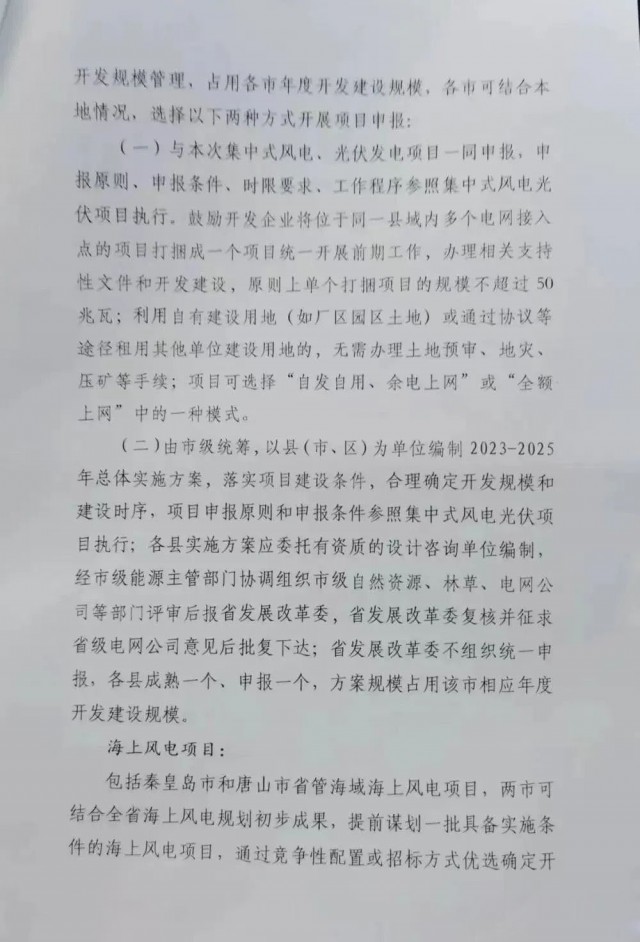 分散式風電項目和地面分布式光伏項目(6MW以下,不含屋頂光伏發(fā)電項目),將納入年度保障性開發(fā)規(guī)模管理,占用各市年度開發(fā)建設規(guī)模。申報方式有兩種:一是與本次集中式項目一起申報,鼓勵開發(fā)企業(yè)將同一縣域內的項目打捆申報,但打捆規(guī)模不得超過50MW;二是由市級統(tǒng)籌,申報條件和原則參照本次集中式項目執(zhí)行,經市級能源主管部門評審后,由省發(fā)改委批復,各縣成熟一個、申報一個。