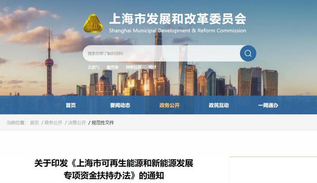 上海市可再生能源和新能源發(fā)展專項資金扶持辦法