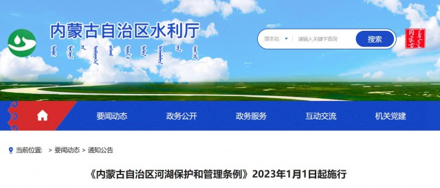2022年11月23日,內(nèi)蒙古自治區(qū)第十三屆人民代表大會(huì)常務(wù)委員會(huì)第三十八次會(huì)議通過《內(nèi)蒙古自治區(qū)河湖保護(hù)和管理?xiàng)l例》,現(xiàn)予公布,自2023年1月1日起施行。