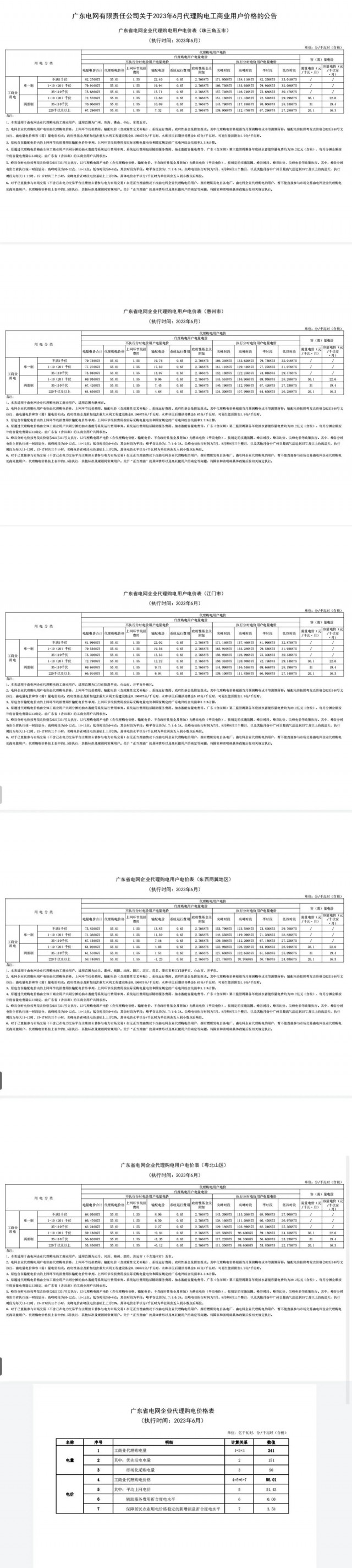 廣東全省各地區(qū)6月份代理購(gòu)電價(jià)格均有小幅的下跌,近日發(fā)布《廣東省發(fā)展改革委轉(zhuǎn)發(fā)國(guó)家發(fā)展改革委關(guān)于第三監(jiān)管周期省級(jí)電網(wǎng)輸配電價(jià)及有關(guān)事項(xiàng)的通知》(粵發(fā)改價(jià)格〔2023〕148號(hào))。新的省級(jí)電網(wǎng)輸配電價(jià)自2023年6月1日起執(zhí)行。即6月用電產(chǎn)生電費(fèi)(7月發(fā)行電費(fèi))按新電價(jià)政策執(zhí)行。