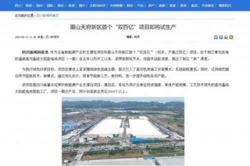 報(bào)道指出,作為全省新能源產(chǎn)業(yè)的支撐性項(xiàng)目和眉山天府新區(qū)首個(gè)“雙百億”(投資、產(chǎn)值過百億)項(xiàng)目,位于新區(qū)青龍街道的通威高效晶硅太陽能電池項(xiàng)目(一期)自去年12月開工以來,緊鑼密鼓搶節(jié)點(diǎn),掛圖作戰(zhàn)趕進(jìn)度,跑出了新區(qū)“新”速度。該項(xiàng)目是四川省重點(diǎn)培育的新能源產(chǎn)業(yè)支撐性項(xiàng)目,建成后,將成為同行業(yè)工藝技術(shù)領(lǐng)先的高效晶硅太陽能電池智能工廠,項(xiàng)目一期達(dá)產(chǎn)后,預(yù)計(jì)創(chuàng)造就業(yè)崗位2000個(gè)以上。