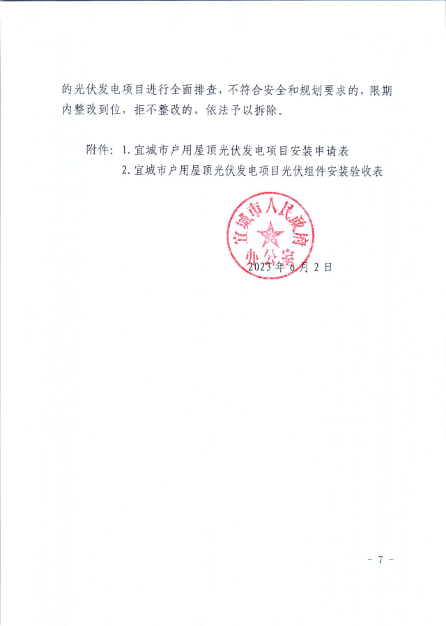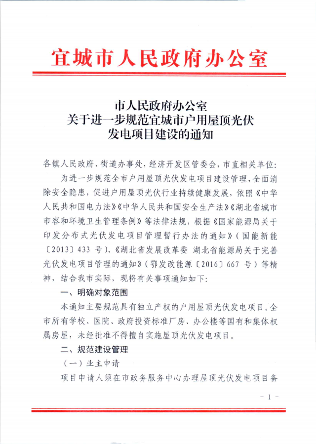 近日,湖北宜城發(fā)布《關(guān)于進(jìn)一步規(guī)范宜城市戶用屋頂光伏發(fā)電項目建設(shè)的通知》,明確指出全市所有學(xué)校、醫(yī)院、政府投資標(biāo)準(zhǔn)廠房、辦公樓等國有和集體權(quán)屬房屋,未經(jīng)批準(zhǔn)不得擅自實施屋頂光伏發(fā)電項目,而戶用光伏項目并網(wǎng)需要8個部門的簽字。