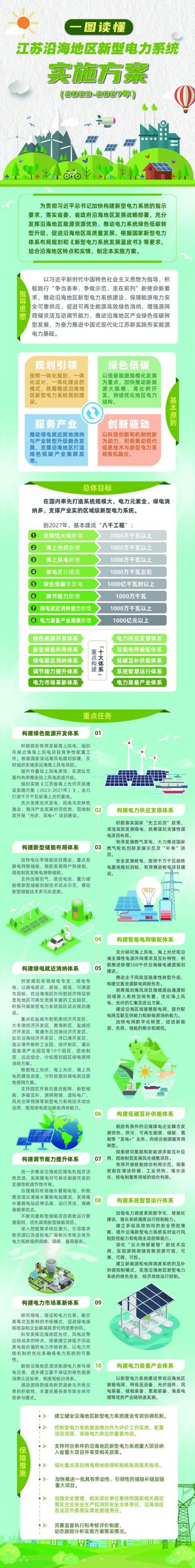 《實施方案》分為指導思想、基本原則、總體目標、重點任務和保障措施五部分,提出到2027年,在沿海地區(qū)重點構建綠色能源開發(fā)體系、電力供應支撐體系、新型儲能布局體系、智能電網(wǎng)輸配體系、綠電就近消納體系等“十大體系”,基本建成“八千工程”,實現(xiàn)支撐性火電新增1000萬千瓦以上、海上光伏新增1000萬千瓦以上、海上風電新增1000萬千瓦以上、核電累計建成1000萬千瓦左右、綠色低碳年發(fā)電1000億千瓦時以上、調(diào)節(jié)能力新增1000萬千瓦、綠電就近消納能力新增1000萬千瓦以上、電力裝備產(chǎn)業(yè)規(guī)模新增1000億元以上,在國內(nèi)率先打造系統(tǒng)規(guī)模大、電力元素全、綠電消納多、支撐產(chǎn)業(yè)實的區(qū)域級新型電力系統(tǒng)。