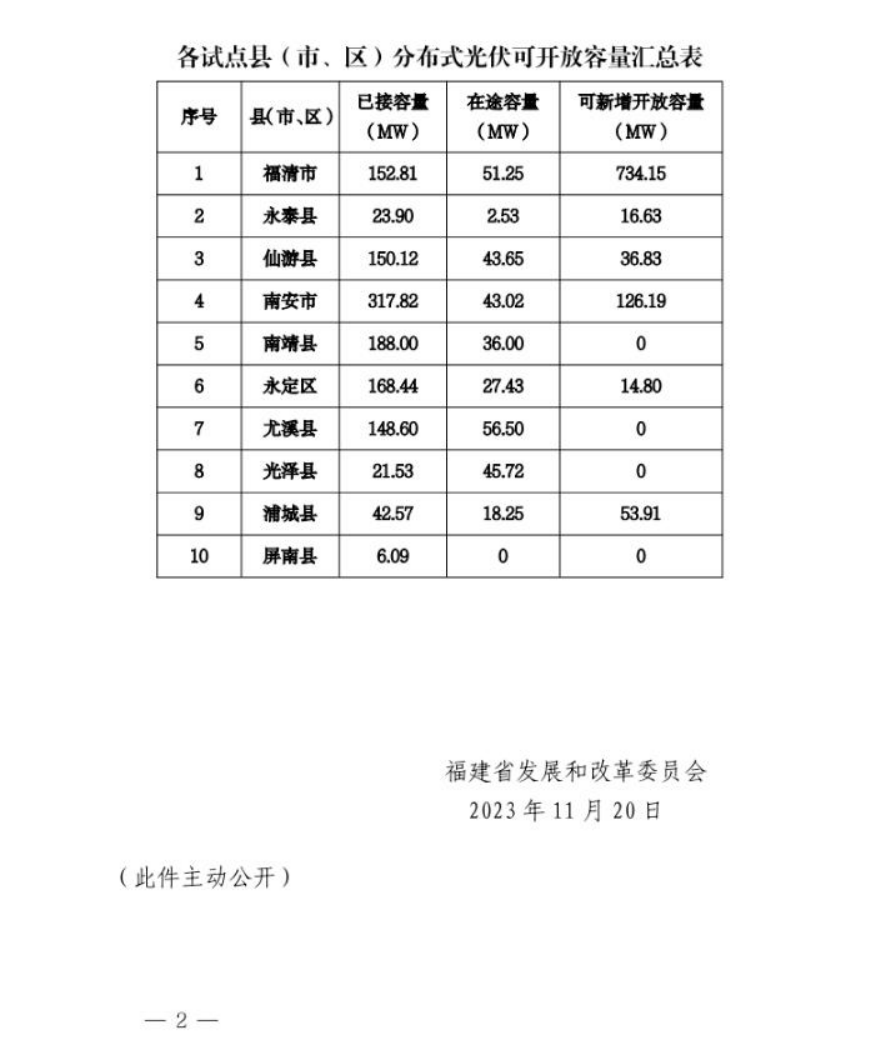 11月20日,福建省發(fā)展和改革委員會發(fā)布《關于發(fā)布試點縣分布式光伏接入電網(wǎng)承載力信息的通告》(下稱《通告》)。