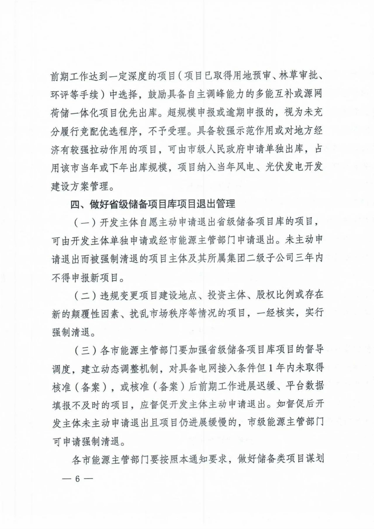需要注意的是,違規(guī)變更項(xiàng)目建設(shè)地點(diǎn)、投資主體、股權(quán)比例或存在新的顛覆性因素、擾亂市場(chǎng)秩序等情況的項(xiàng)目,一經(jīng)核實(shí),實(shí)行強(qiáng)制清退。對(duì)具備電網(wǎng)接入條件但1年內(nèi)未取得核準(zhǔn)(備案),或核準(zhǔn)(備案)后前期工作進(jìn)展遲緩、平臺(tái)數(shù)據(jù)填報(bào)不及時(shí)的項(xiàng)目,應(yīng)督促開發(fā)主體主動(dòng)申請(qǐng)退出,否則將主動(dòng)清退。
