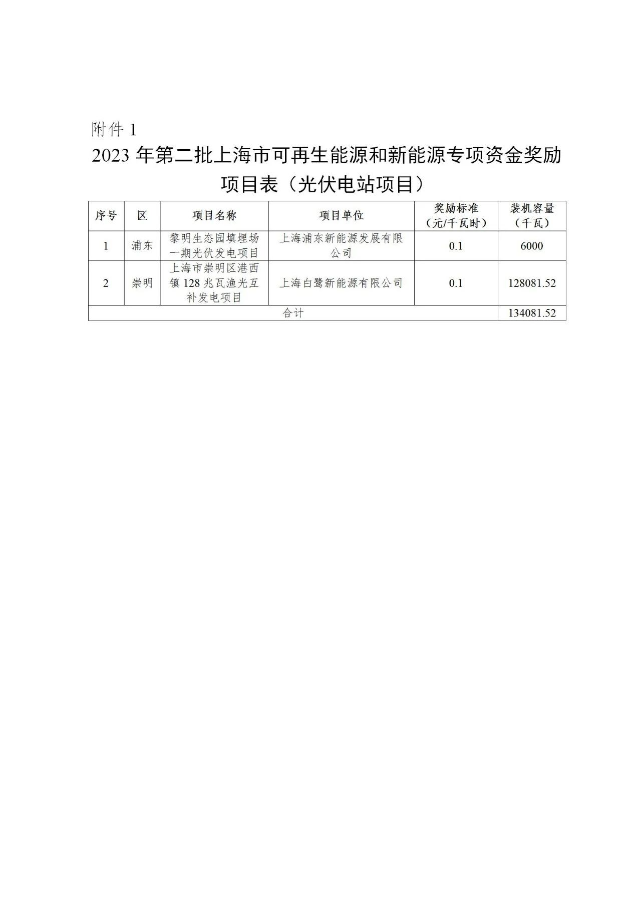 文件指出,根據(jù)《上海市可再生能源和新能源發(fā)展專項資金扶持辦法》(滬發(fā)改規(guī)范〔2022〕14號,以下稱“14號文”)、《關(guān)于開展上海市可再生能源和新能源發(fā)展專項資金扶持項目線上申報試點工作的通知》(滬發(fā)改能源〔2023〕174號),市發(fā)展改革委會同市財政局組織開展了2023年第二批可再生能源和新能源發(fā)展專項資金獎勵目錄的核實確認(rèn)工作。