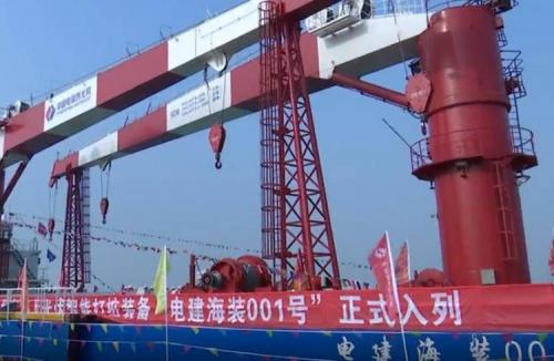 全國首臺套海上光伏智能高效打樁裝備“電建海裝001號”