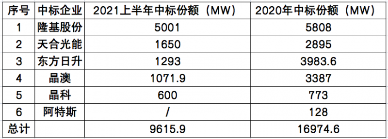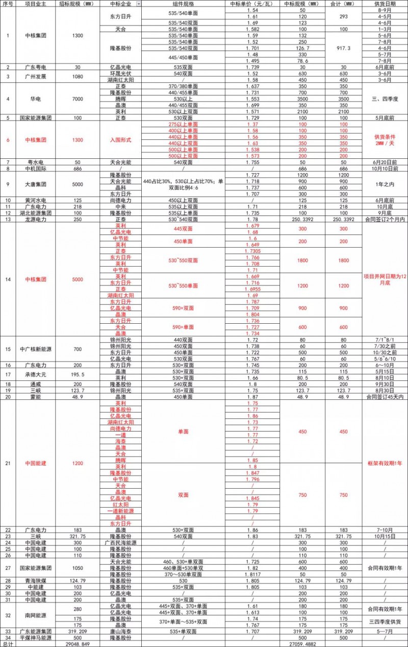 自年初中核集團(tuán)開啟2021年首次大規(guī)模組件招標(biāo)以來,截止到2021年6月底,國內(nèi)以大唐、華電、中核為代表的電力央企已經(jīng)陸續(xù)完成逾29GW的光伏組件招標(biāo)與定標(biāo)工作。
