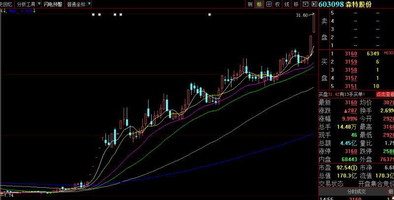 消息公布后,森特股份連續(xù)五個(gè)漲停。