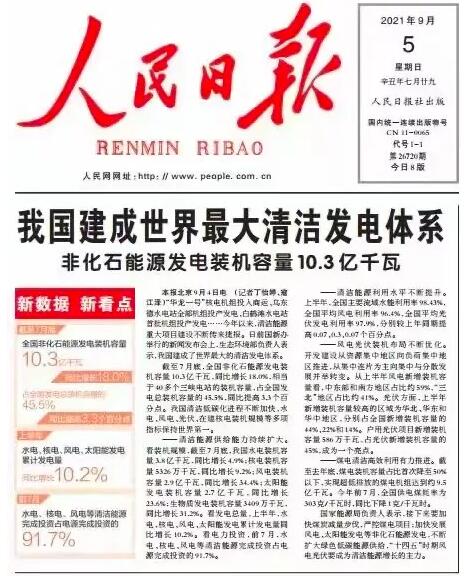 我國清潔低碳化進(jìn)程不斷加快,水電、風(fēng)電、光伏、在建核電裝機(jī)規(guī)模等多項(xiàng)指標(biāo)保持世界第一。
