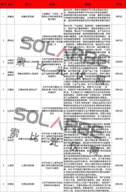那么,10月份的光伏行業(yè)又有哪些政策值得關(guān)注呢?下面來(lái)看索比光伏網(wǎng)的梳理。