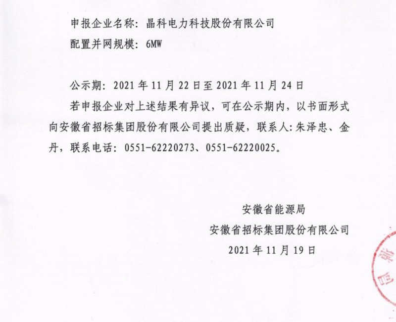 11月19日,安徽省能源局下發(fā)了《安徽省2021年光伏發(fā)電項(xiàng)目競(jìng)爭(zhēng)性配置(第二批次)中選公告》和《安徽省2021年風(fēng)電項(xiàng)目競(jìng)爭(zhēng)性配置(第二批次)中選公告》,其中,光伏30個(gè)項(xiàng)目總規(guī)模為2502MW;風(fēng)電6個(gè)項(xiàng)目總規(guī)模為1166MW。
