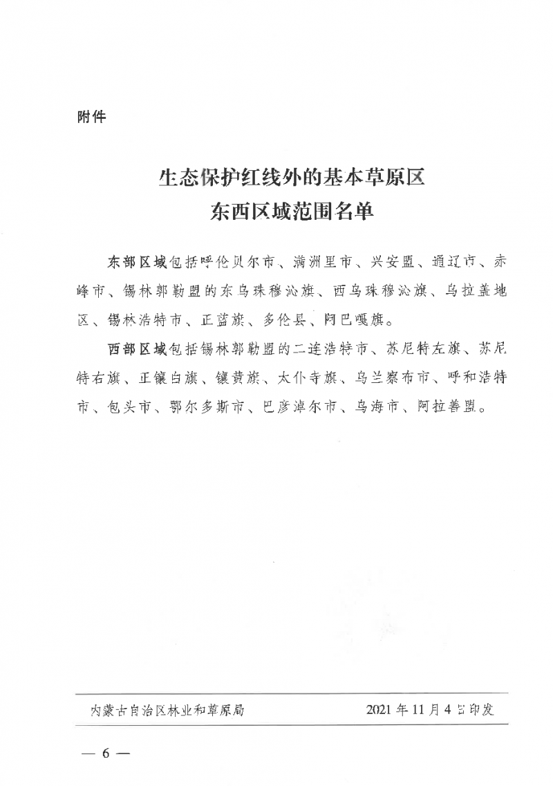 近日,內(nèi)蒙古自治區(qū)林業(yè)和草原局,內(nèi)蒙古自治區(qū)發(fā)展和改革委員會(huì),內(nèi)蒙古自治區(qū)自然資源廳,內(nèi)蒙古自治區(qū)工業(yè)和信息化廳,內(nèi)蒙古自治區(qū)能源局聯(lián)合發(fā)布了《關(guān)于實(shí)行征占用草原林地分區(qū)用途管控的通知》,把草原林地保護(hù)更加精準(zhǔn)聚焦到生態(tài)系統(tǒng)核心區(qū)域。文件顯示,內(nèi)蒙古將實(shí)行征占用草原林地分區(qū)用途管控。