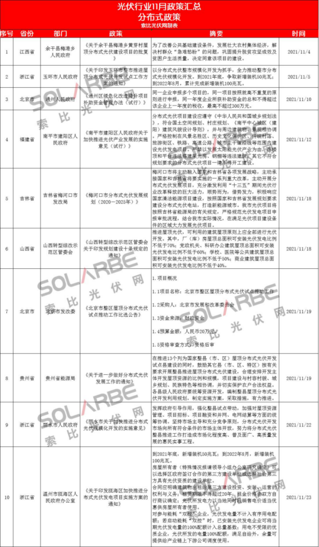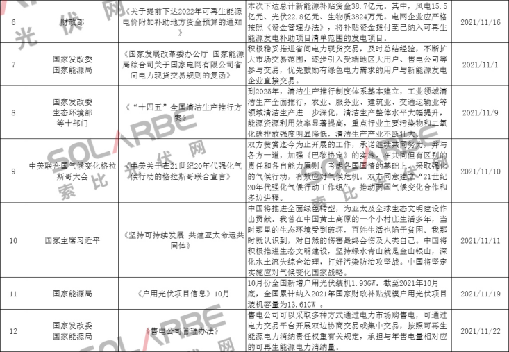 那么,11月份的光伏行業(yè)有哪些政策值得重點關(guān)注呢?下面來看索比光伏網(wǎng)的梳理。