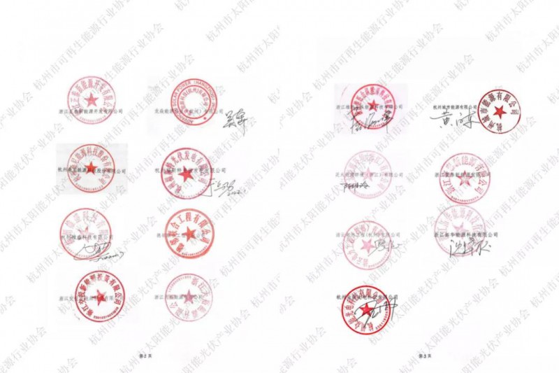 為踐行該《導(dǎo)則》在杭州全域及浙江全省的推廣應(yīng)用,在杭州市太陽(yáng)能光伏產(chǎn)業(yè)協(xié)會(huì)和杭州市可再生能源行業(yè)協(xié)會(huì)的組織下,浙江正泰新能源開(kāi)發(fā)有限公司、龍焱能源科技(杭州)有限公司、杭州桑尼能源科技股份有限公司、杭州福斯特光伏發(fā)電有限公司、杭州帷盛科技有限公司、德鄰聯(lián)合工程有限公司、浙江交投新能源投資有限公司、浙江天裕能源有限公司、浙江維旺合縱能源科技有限公司、杭州城市能源有限公司、泛太能源環(huán)境(浙江)有限公司、浙江寰泰新能源有限公司、浙江拓華能源科技有限公司、潔云電力工程(杭州)有限公司、杭州眾能光電科技有限公司共十五家光伏企業(yè),根據(jù)《導(dǎo)則》條款,聯(lián)合簽署了《杭州市屋頂分布式光伏安裝與運(yùn)維服務(wù)行業(yè)自律公約》,帶頭向社會(huì)公開(kāi)承諾加強(qiáng)行業(yè)自律,共同維護(hù)浙江省和杭州市整縣(市、區(qū))推進(jìn)屋頂分布式光伏開(kāi)發(fā)工作中的市場(chǎng)秩序和良好發(fā)展。