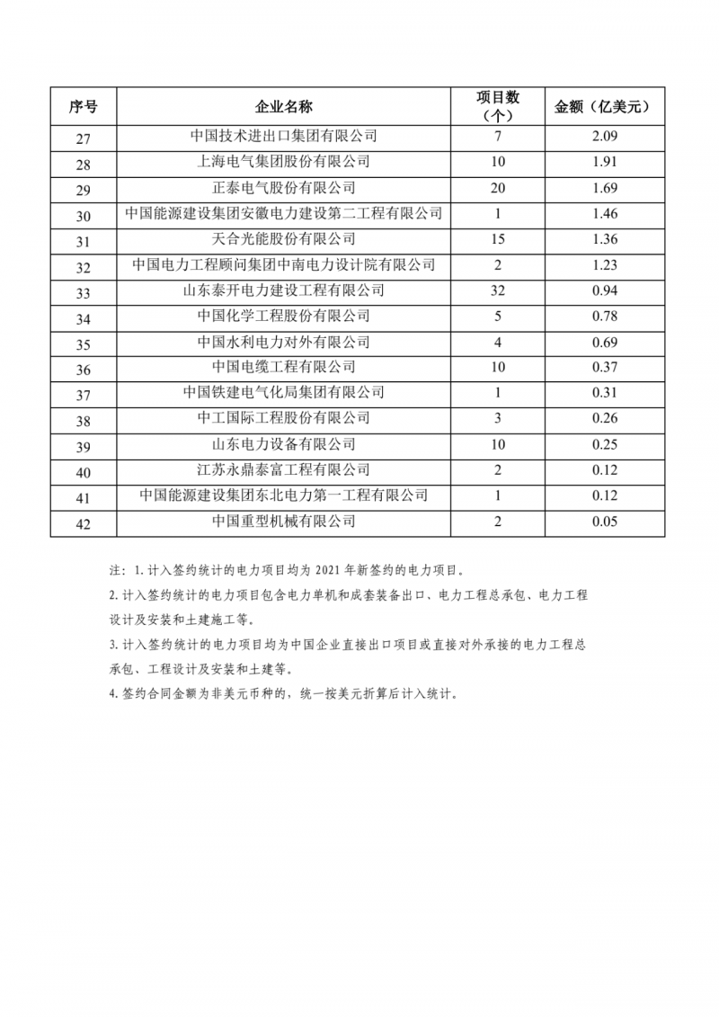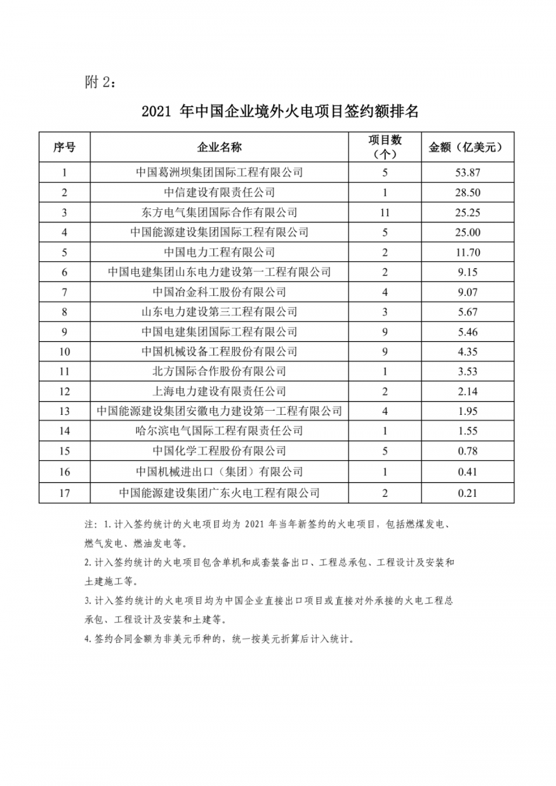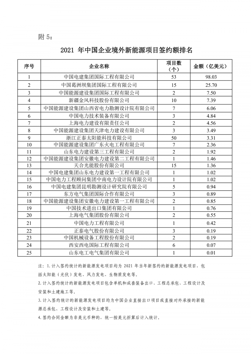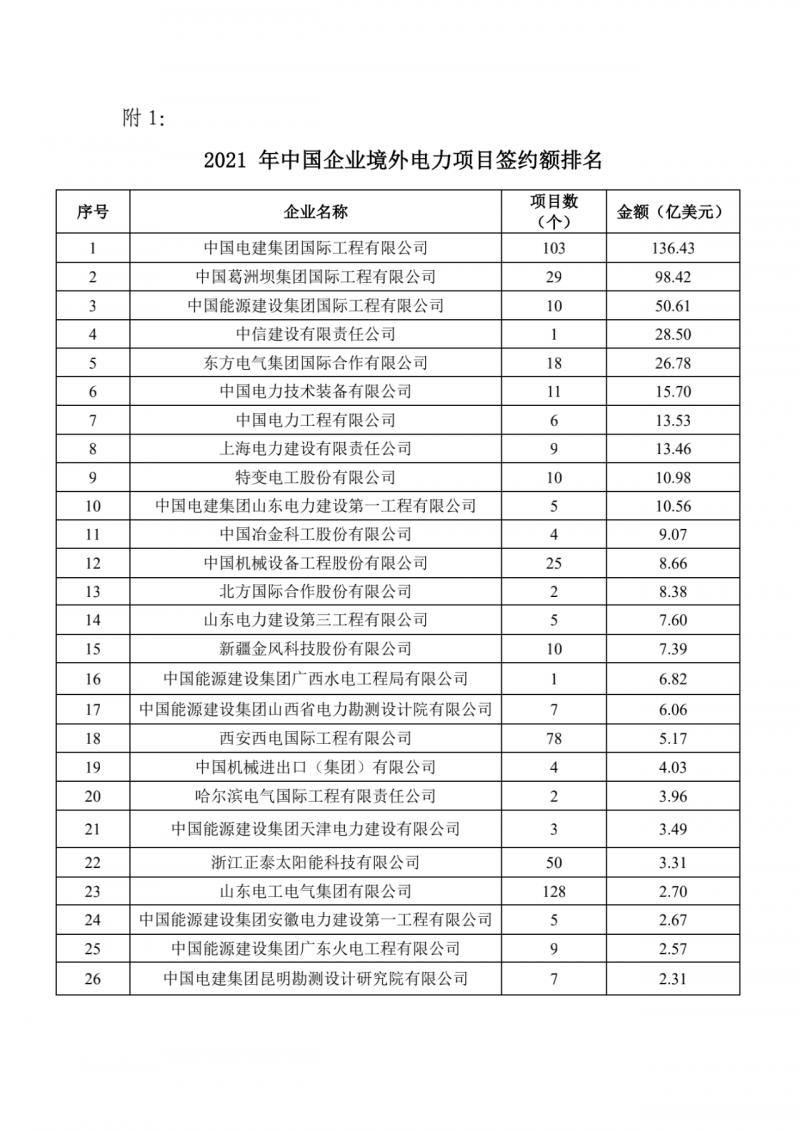 此外,2021年中國企業(yè)境外電力項(xiàng)目簽約額排名總榜依然是由上述企業(yè)引領(lǐng)。