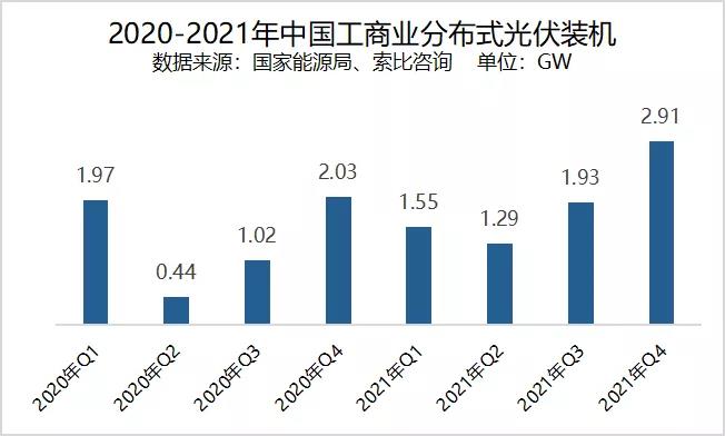 與此同時,下半年以來,在中央“能耗雙控”政策、電價政策的共同推動下,工商業(yè)分布式光伏也取得歷史最好成績,全年新增裝機(jī)7.68GW,其中四季度新增裝機(jī)近3GW。
