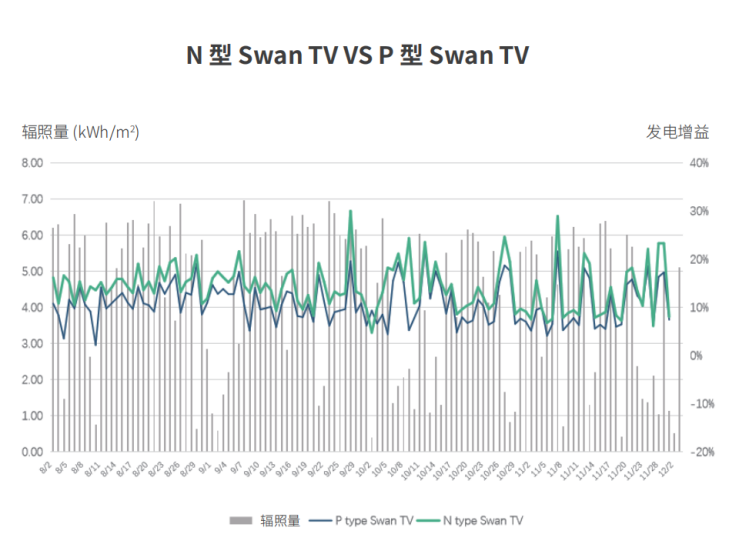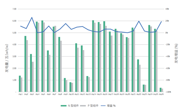 技術(shù)人員指出,N型TOPCon已經(jīng)在量產(chǎn)效率、成本控制和市場(chǎng)份額上取得明顯優(yōu)勢(shì),高效N型產(chǎn)品將加速新能源大基地項(xiàng)目高質(zhì)量落地。長(zhǎng)遠(yuǎn)來(lái)看,TOPCon電池正處于高速發(fā)展期,其效率的不斷提升會(huì)不斷拉大N、P型組件的功率差異,制造工藝的優(yōu)化、新型技術(shù)的應(yīng)用亦會(huì)不斷擴(kuò)大其在成本端的優(yōu)勢(shì)。“在山東、浙江、海南的實(shí)證數(shù)據(jù)表明,同尺寸N型雙面組件在不同環(huán)境、不同時(shí)段、不同天氣下都能帶來(lái)更高發(fā)電量,平均比P型雙面組件高2.95%-10.26%。得益于更低的溫度系數(shù),隨著太陽(yáng)輻照度的增加,N型組件的輸出功率呈線性增加。此外,在低輻照度下,得益于更好的弱光性表現(xiàn),N型組件能提供更高輸出功率以及更好的標(biāo)準(zhǔn)化輸出功率。”