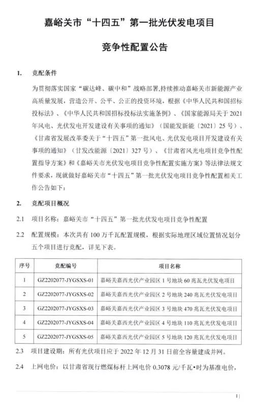 配儲(chǔ)規(guī)?!?0%!甘肅嘉峪關(guān)發(fā)布1GW光伏競爭性配置項(xiàng)目