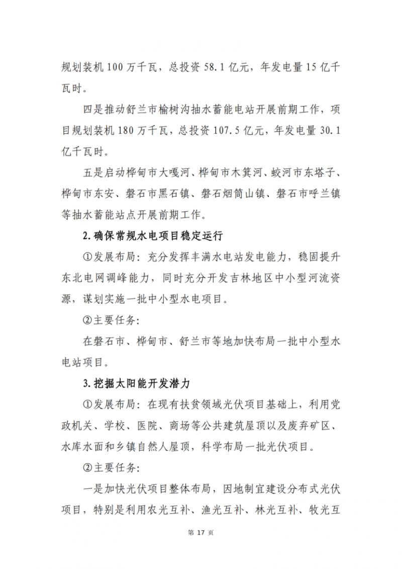 東南部綠色能源生產(chǎn)區(qū)及應(yīng)急調(diào)峰保障區(qū)。充分利用東部和南部地區(qū)的生態(tài)屏障水能資源,電網(wǎng)接入條件良好,風(fēng)、光資源豐富的優(yōu)勢(shì),加快風(fēng)電、光伏電站規(guī)?;?、集中化發(fā)展,建設(shè)新能源生產(chǎn)保障基地。積極開(kāi)展一批抽水蓄能電站建設(shè),優(yōu)化選址開(kāi)發(fā)大型核電項(xiàng)目,進(jìn)一步增強(qiáng)風(fēng)電、光電的消納平衡能力,形成電力應(yīng)急調(diào)峰保障區(qū),為吉林電網(wǎng)及整個(gè)東北電網(wǎng)的平穩(wěn)運(yùn)行提供支撐,與生態(tài)環(huán)保高度融合,推動(dòng)?xùn)|南部地區(qū)的綠色發(fā)展。