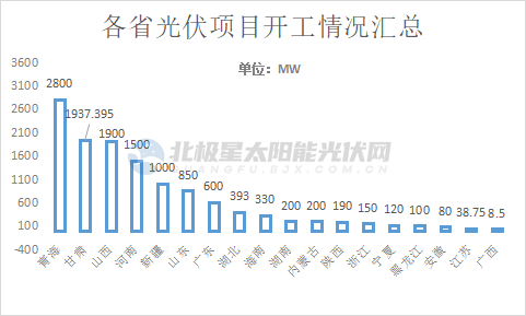 第一季度,淡季不淡。國家能源局通報(bào)數(shù)據(jù)顯示,1~2月新增光伏裝機(jī)10.86GW,同比增長234%,3月繼續(xù)高歌猛進(jìn)。據(jù)北極星太陽能光伏網(wǎng)跟蹤統(tǒng)計(jì),截至目前已經(jīng)有52個(gè)、總規(guī)模約12.4GW光伏項(xiàng)目陸續(xù)發(fā)布開工信息。分地區(qū)來看,其中青海、甘肅、山西、河南、新疆5地光伏開工項(xiàng)目均超1GW,海南、湖南開工項(xiàng)目均超300MW。
