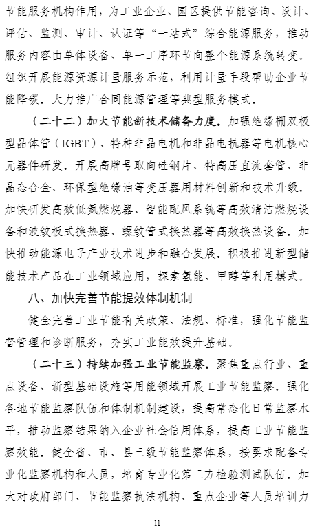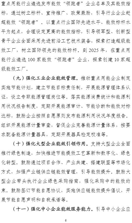 計劃提出,到2025年,重點工業(yè)行業(yè)能效全面提升,數(shù)據(jù)中心等重點領(lǐng)域能效明顯提升,綠色低碳能源利用比例顯著提高,節(jié)能提效工藝技術(shù)裝備廣泛應(yīng)用,標(biāo)準(zhǔn)、服務(wù)和監(jiān)管體系逐步完善,鋼鐵、石化化工、有色金屬、建材等行業(yè)重點產(chǎn)品能效達到國際先進水平,規(guī)模以上工業(yè)單位增加值能耗比2020年下降13.5%。能盡其用、效率至上成為市場主體和公眾的共同理念和普遍要求,節(jié)能提效進一步成為綠色低碳的“第一能源”和降耗減碳的首要舉措。