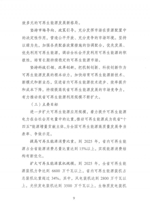● 提高可再生能源消費比重:到 2025 年,省內可再生能源占全省能源消費總量比重達到15%以上,實現(xiàn)能源消費結構有新優(yōu)化。