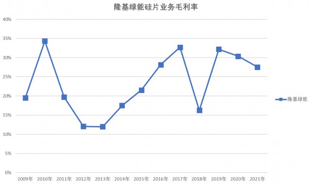 近些年來,盈利能力穩(wěn)定的硅片環(huán)節(jié)被認(rèn)為具有一定的競爭壁壘,而電池片環(huán)節(jié)則給人以相對弱勢的感覺。不過,參考隆基綠能硅片業(yè)務(wù)毛利率變化,其實(shí)硅片環(huán)節(jié)亦有顯著的周期性特征,強(qiáng)勢地位并非堅不可摧。