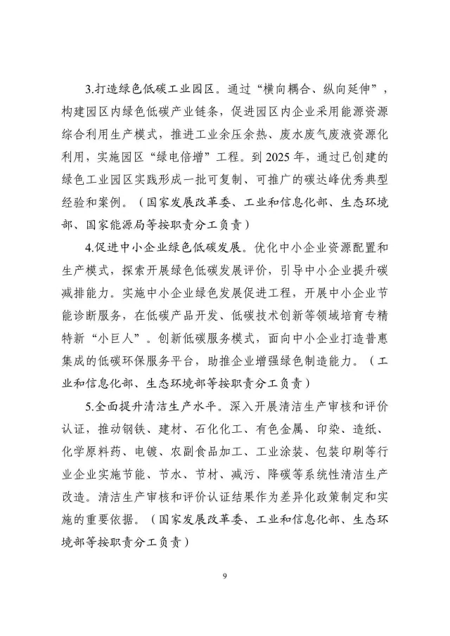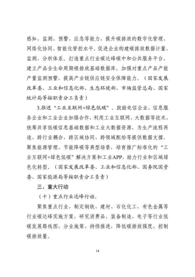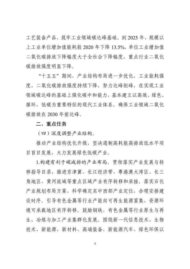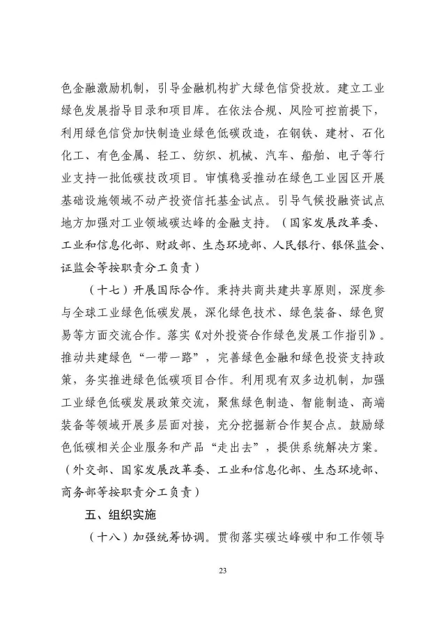 《工業(yè)領(lǐng)域碳達峰實施方案》已經(jīng)碳達峰碳中和工作領(lǐng)導小組審議通過,現(xiàn)印發(fā)給你們,請認真貫徹落實。