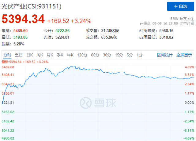 8月9日,調整一周有余的光伏板塊迎來全線反彈,個股呈現普漲態(tài)勢,中證光伏產業(yè)指數(CSI:931151)大漲3.24%,報收5394點。值得注意的是,近幾個交易日股價表現強勢的部分電池片概念股早盤出現沖高回落的情況,而近期股價表現較為萎靡的硅片等產業(yè)鏈上游個股卻集體大漲。