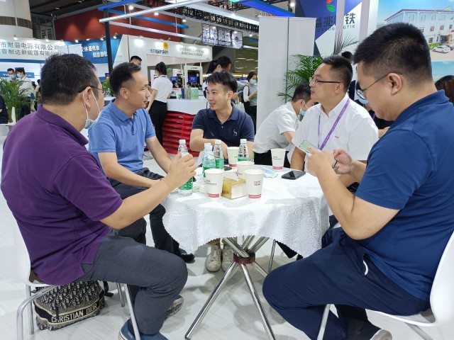 展會(huì)第一天,紅太陽(yáng)新能源公司與中國(guó)能源建設(shè)集團(tuán)廣東省電力設(shè)計(jì)研究院有限公司新能源工程公司、中國(guó)能源建設(shè)集團(tuán)廣東省電力設(shè)計(jì)研究院有限公司市政與建筑公司現(xiàn)場(chǎng)簽署戰(zhàn)略合作協(xié)議,紅太陽(yáng)新能源公司總經(jīng)理劉賢金(左二)出席簽約儀式。