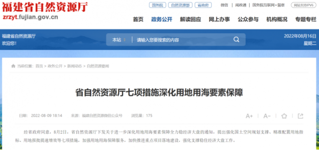 8月2日,福建省自然資源廳發(fā)布了關(guān)于進(jìn)一步深化用地用海要素保障全力穩(wěn)經(jīng)濟(jì)大盤(pán)的通知,通知對(duì)福建省用海、用地做了相關(guān)落實(shí)規(guī)定。