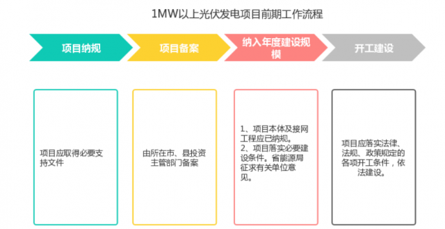 1.1MW以上光伏發(fā)電項(xiàng)目由省能源局發(fā)布規(guī)劃和年度建設(shè)規(guī)模,由屬地進(jìn)行備案,流程圖如下: