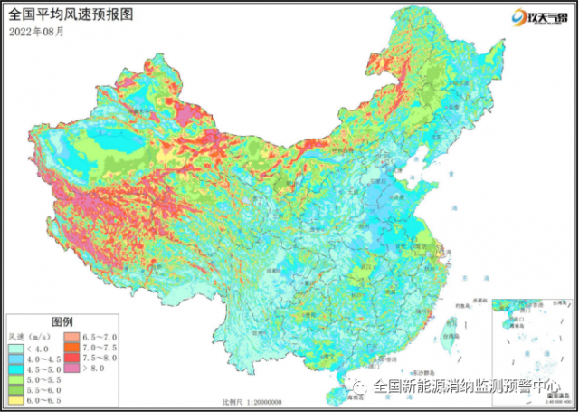 附圖3 全國2022年8月平均風(fēng)速分布預(yù)報圖